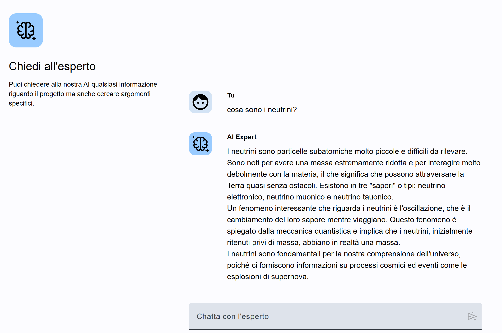 Using hundreds of initial documents provided by the research institute, Neodata built a knowledge base capable of clustering thematic areas of broader interest. These clusters are made accessible through a user-friendly navigation interface, which includes a chatbot for answering specific questions.