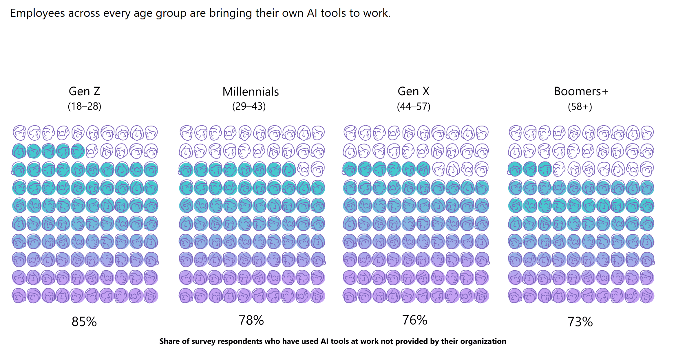 AI is redefining work in all its forms, and every generation is playing a role in this transformation. But to move from individual adoption to systemic impact, we need a shared vision. Companies must provide training, clear policies, and secure tools to integrate AI strategically, ethically, and at scale.