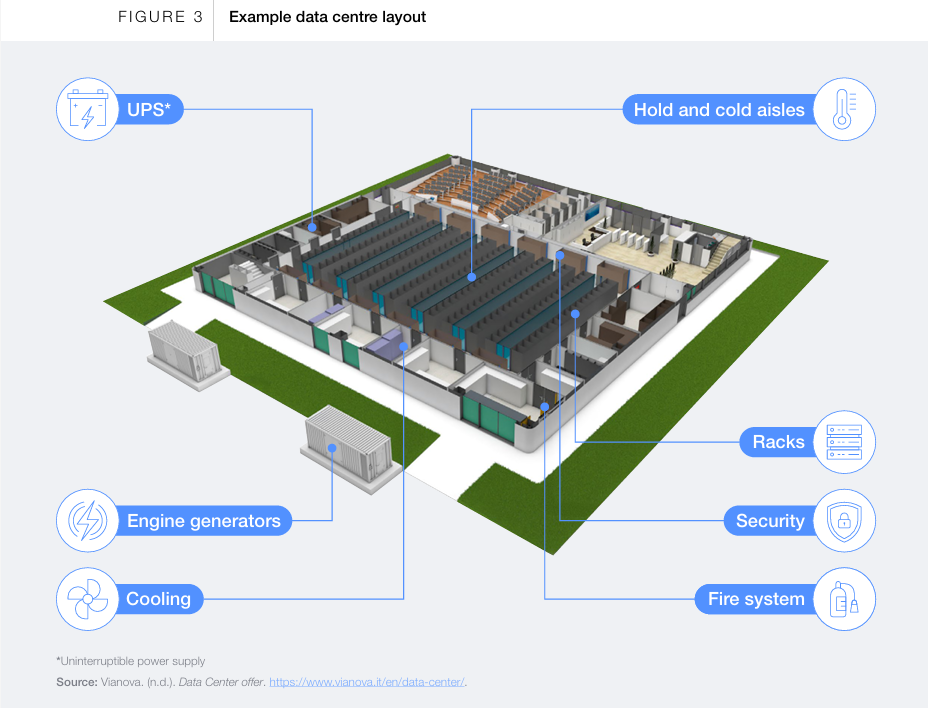 Nel 2022, secondo l'International Energy Agency (IEA), i data center hanno consumato tra i 240 e i 340 terawattora (TWh), pari a circa l’1–1,3% della domanda elettrica globale. Includendo il mining di criptovalute e le reti di trasmissione dati, si arriva a circa al 2%.